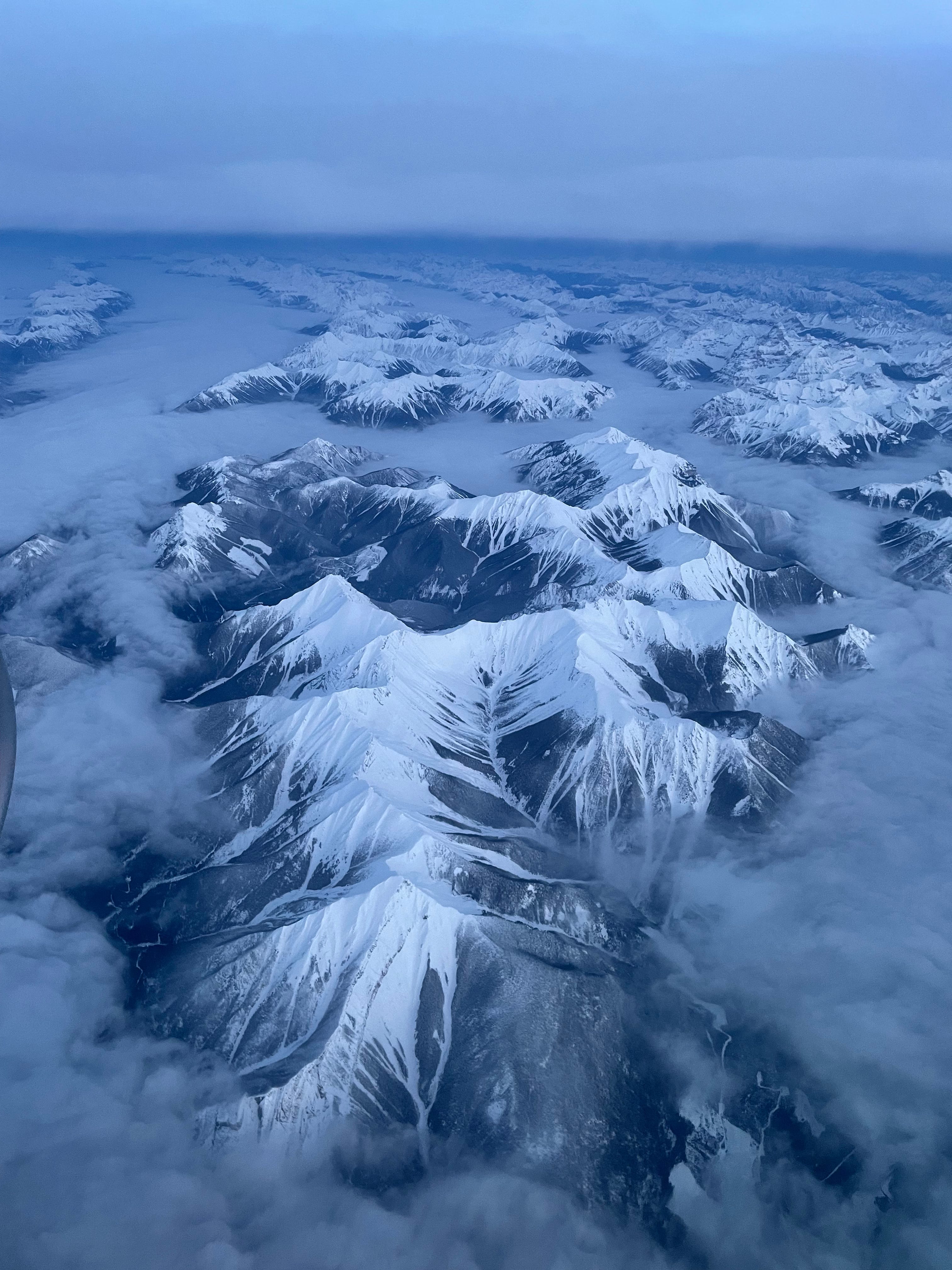 It wasn’t a full flight and I was upgraded to a window seat in business class — still a novelty, even after all these years. Staring out the window, watching the sunrise over the Rocky Mountains, I felt a swell of pride. The snow-capped peaks made me think of the movie Alive. I remember when Mom and Bruce took us to see it in the theater. It was 1993 and we were 13-years-old. Given what we were exposed to at our first year of Junior High (drugs, gangs, girls having sex listening to Red, Red Wine) a film about a plane crash and cannibalism shouldn’t have been so traumatizing. But I can still vividly recall the way the survivors let the sun cook the human flesh of the dead passengers on the reflective parts of the plane wreckage. It looked like beef jerky.